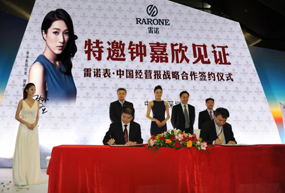 6月29日,雷諾表與《中國經營報》簽訂戰略合作協議,首次成就鐘表品牌與商務媒體的強勢結合。同時盛邀香港當紅影星鐘嘉欣出席儀式,共同見證雷諾表又一品牌推廣戰略盛事。